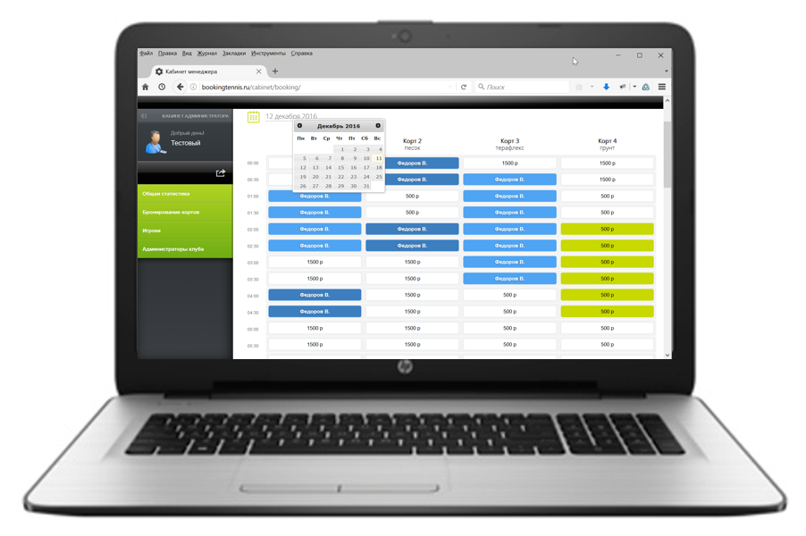 Автоматизация продаж кортов и полей (теннис, волейбол, футбол, хоккей и т.д.)