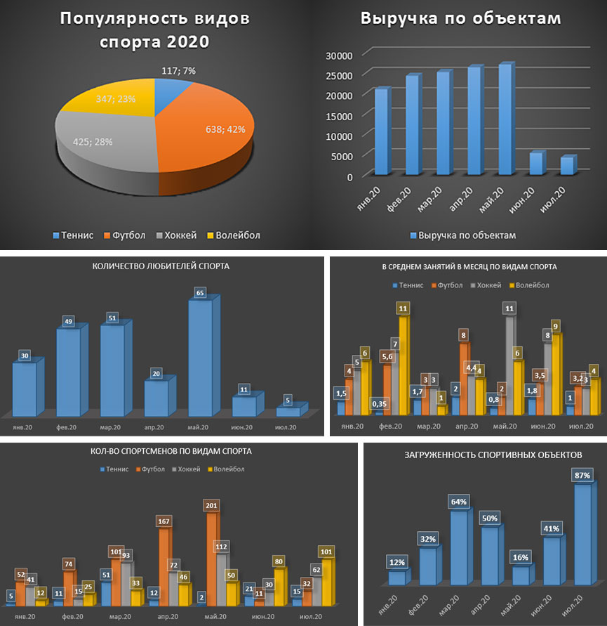 • Отчеты по группам, персональным занятиям, детским тренировкам;